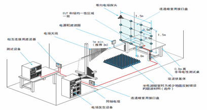 天線包括:單極(桿)天線,雙錐天線,對數天線,喇叭天線。同時根據不同測試標準,天線與受測設備距離通常有1m、3m、10m等。